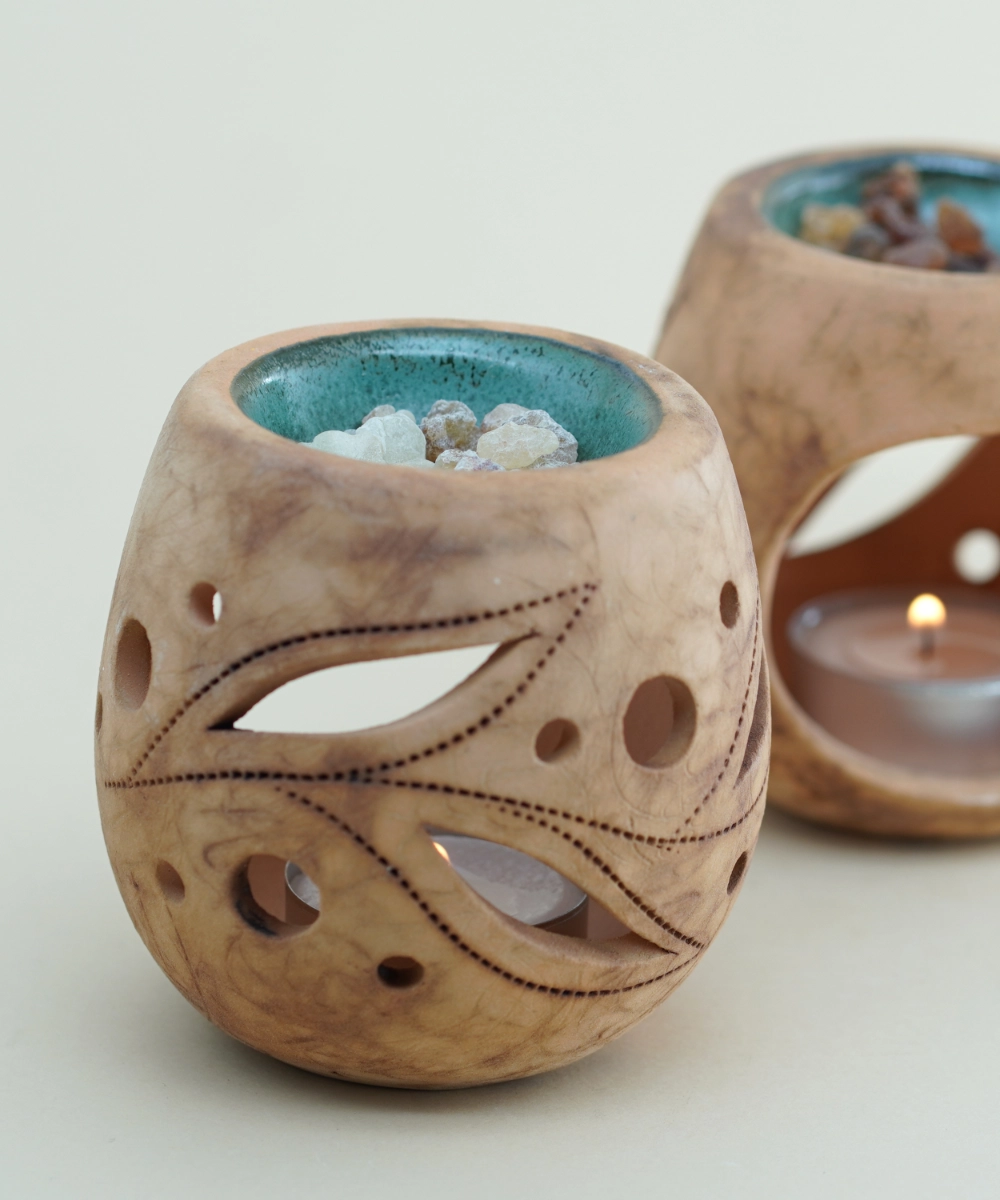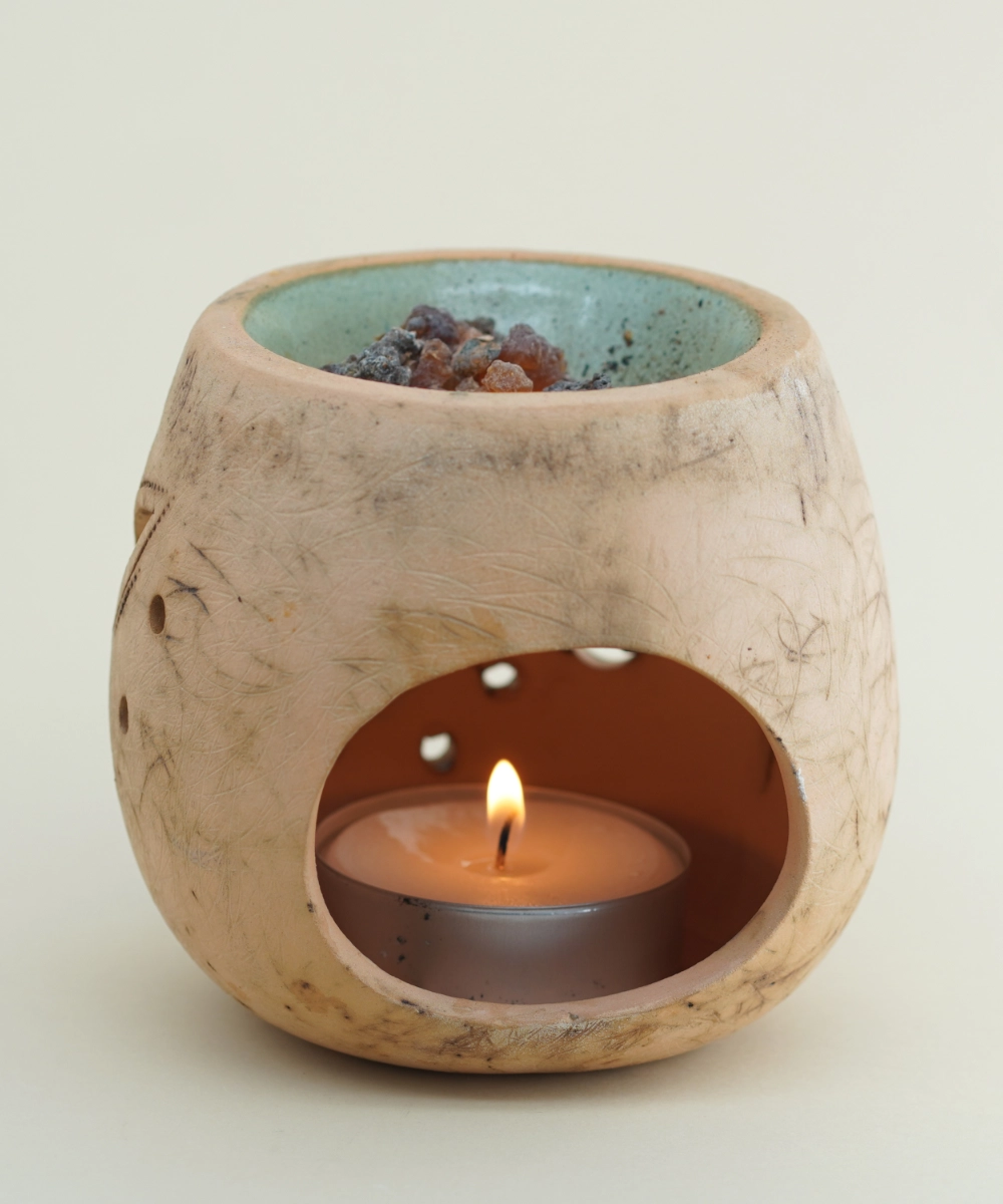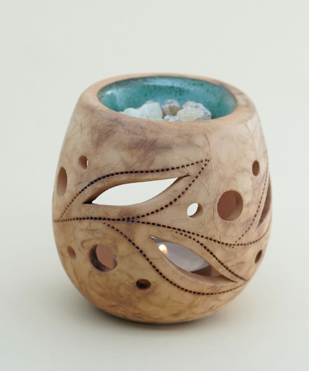 Dizajniran za isparavanje tamjana, eteričnih ulja ili drugih aromatičnih smesa, ovaj isparivač širi blag i umirujući miris, stvarajući opuštajuću atmosferu. Njegova izrada od keramike obezbeđuje dugotrajnost i lako održavanje. Savršen je izbor za ljubitelje prirodnih materijala i ručno rađenih proizvoda.